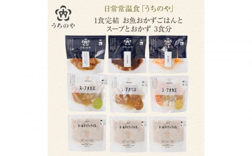 日常常温食「うちのや」1食完結 お魚おかず ごはんとスープとおかず 3食分
