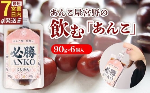 - 飲むあんこ 90g 6個 あんこ 餡 必勝あんこ 小豆 あずき こしあん スイーツ デザート 和菓子 甘い あんバター トースト 常温 エネルギーチャージ 低脂質 ポリフェノール 鉄分 食物繊維 糖分 受験 受験勉強 応援 メッセージ プレゼント 宮野食品工業所 新発田市 新潟 miyano008