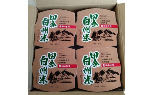 - 田舎白州米 農林48号 パックライス 20個 150g ご飯 白州町産 うるち米 期間限定 数量限定 令和7年産 防災 ローリングストック 常備品 山梨県北杜市