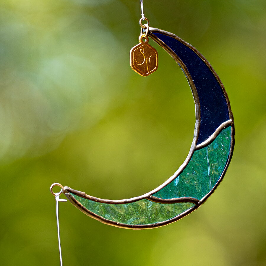 - 【ふるさと納税】ステンドグラス 三日月 モチーフ サンキャッチャー 手作り インテリア雑貨 ハンドメイド 雑貨 クリスタルガラス 癒し グッズ 室内飾り リラックス ギフト プレゼント 新生活 贈り物 お祝い 室内装飾 オフィス飾り おしゃれ インテリア小物