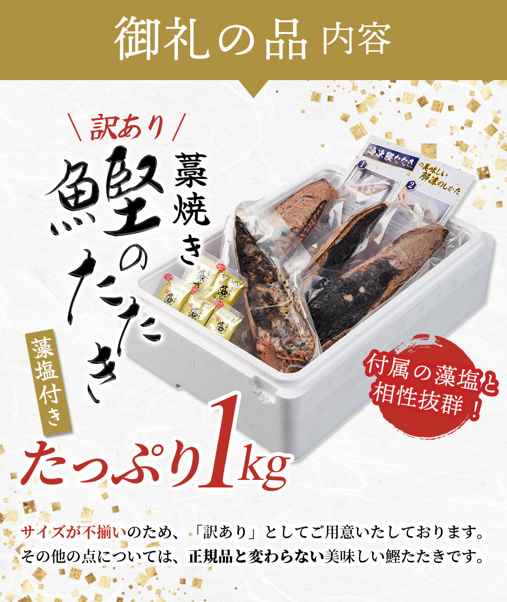 - 焼きが命! 藁焼き かつおのたたき 1kg (藻塩付き) 訳あり サイズふぞろい / 鰹 かつお カツオのたたき 鰹のたたき 冷凍 真空【nks103C】