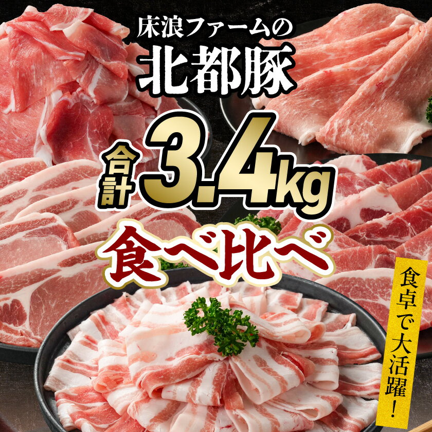 - 【ふるさと納税】床浪ファームの北都豚食べ比べ3.4kg - 北都豚 肩ロース焼肉 ロースとんかつ バラしゃぶしゃぶ モモスライス 小間切れ 豚肉 セット 焼肉用 とんかつ用 しゃぶしゃぶ用 冷凍配送 送料無料 17-N2-018-3400【宮崎県都城市】