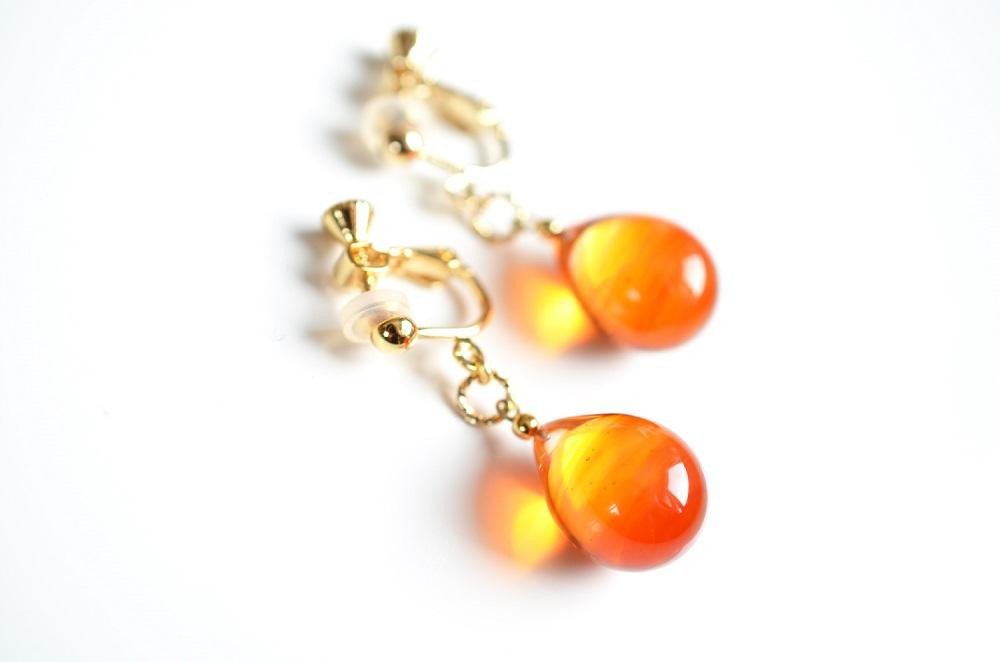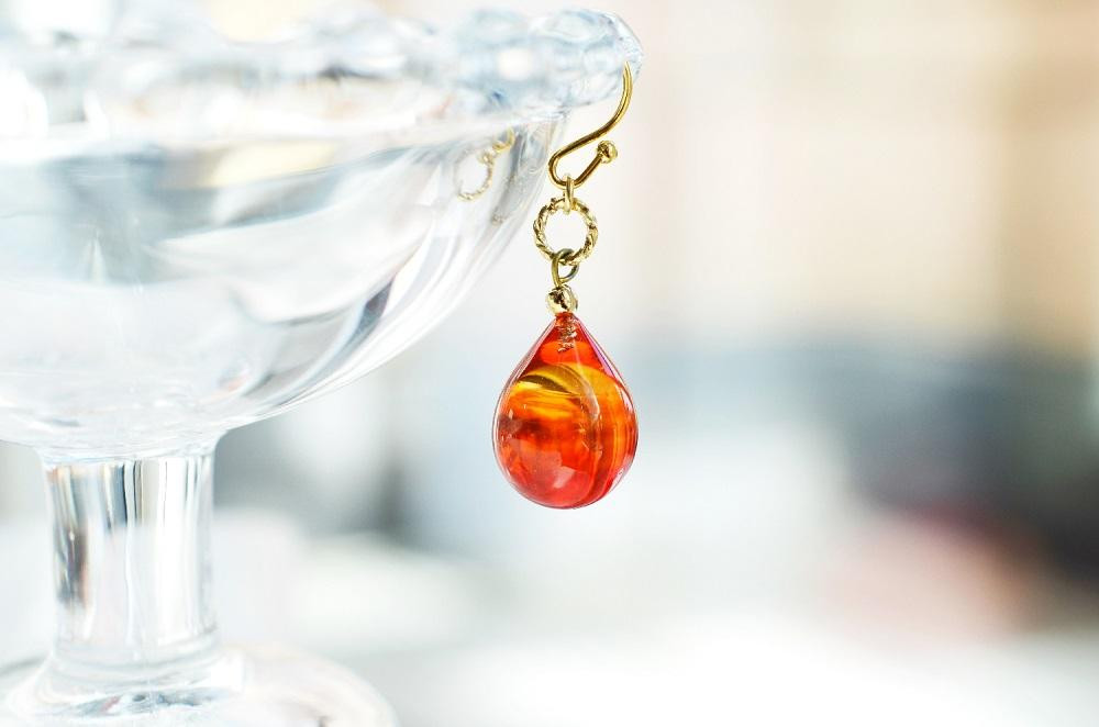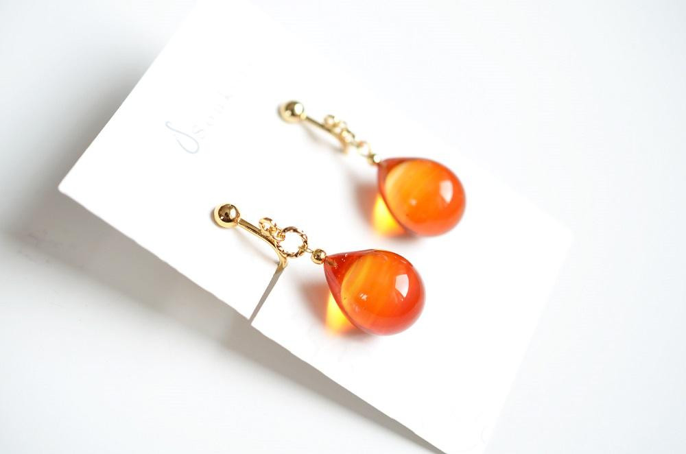 【Soukore】ガラスアクセサリー・夕やけカラーイヤリング