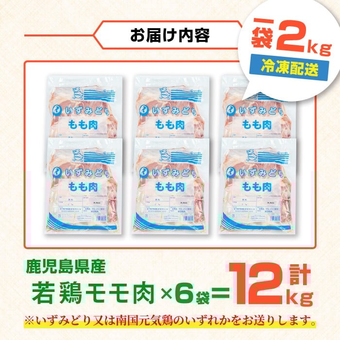 - i1090-C 鹿児島県産 若鶏モモ肉(計12kg・2kg×6袋) 鶏肉 鳥肉 もも肉 とり肉 国産 鹿児島県産 2kg 12kg 安心安全 冷凍 【まつぼっくり】