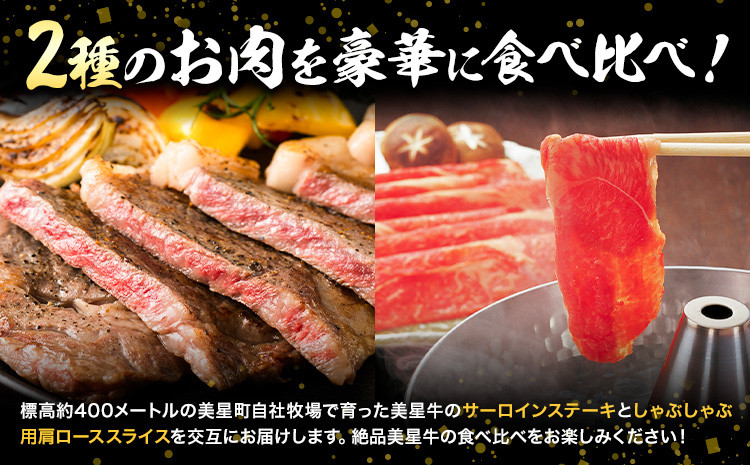 - 【お試し2回定期便】美星牛 お肉の定期便 サーロインステーキ 肩ローススライス しゃぶしゃぶ用 ハレノヒ良品《お申込み月の翌月から発送》 岡山県 浅口市 肉 和牛 国産 牛肉 サーロイン 牛ロース しゃぶしゃぶ