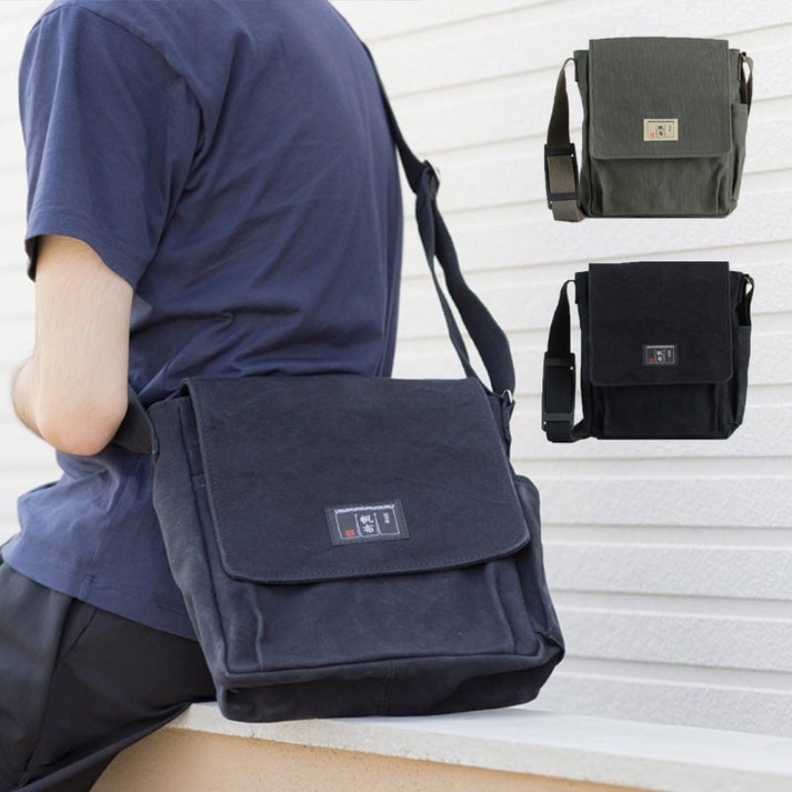- 「日乃本帆布」 かぶせショルダー 〔 色 が 選べる モスグリーン / ブラック 〕 バッグ バック かぶせ ショルダー ショルダーバッグ 帆布バッグ