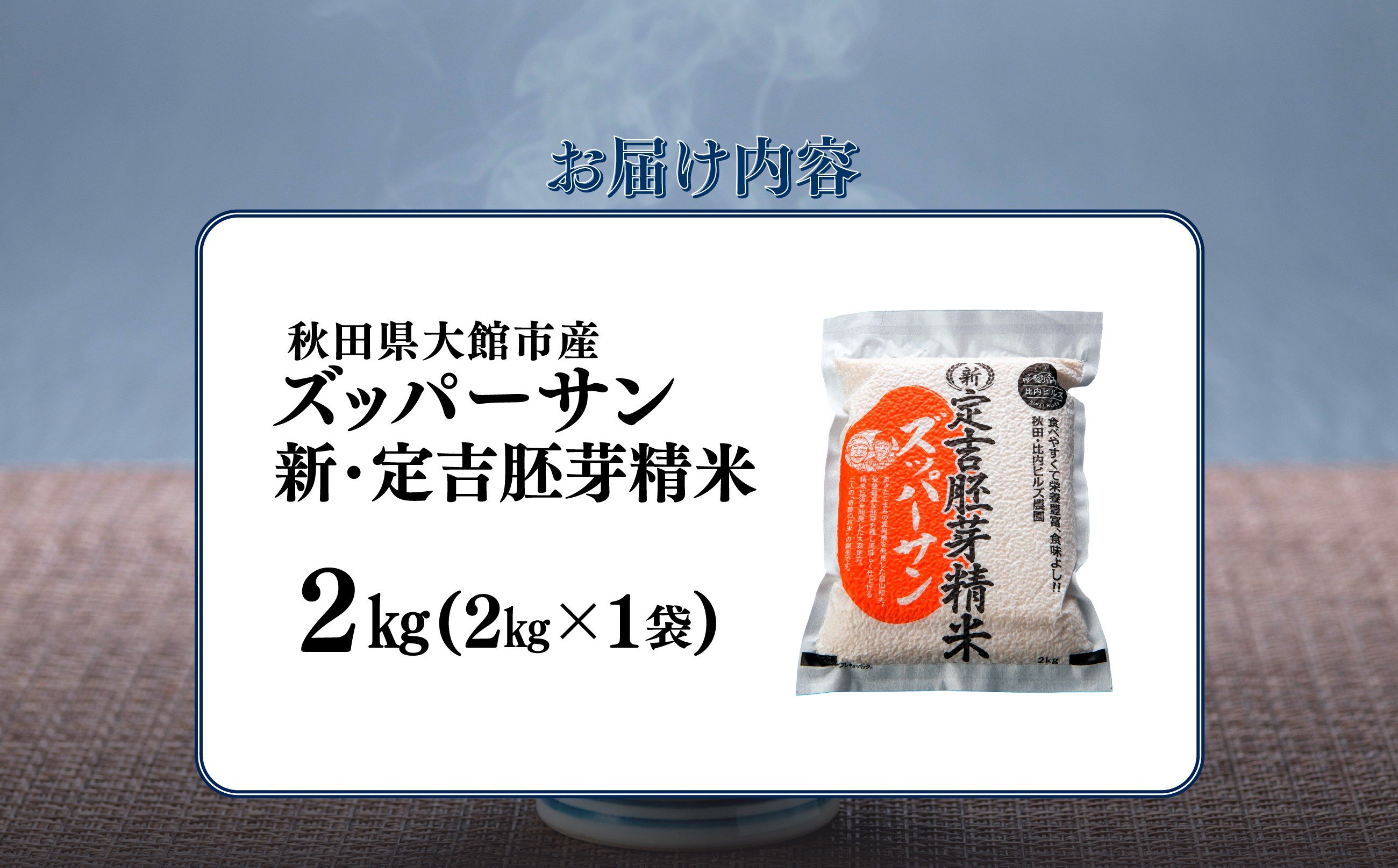 【令和7年産】<ズッパーサン>新定吉胚芽精米2kg(2kg×1袋) 65P9009 / 秋田 東北 大館 精米 米 2kg 白米 令和7年産 秋田県産 あきたこまち おにぎり ブランド米 農家 キロ キログラム 新品種 ズッパーサン 粒が大きい テレビ