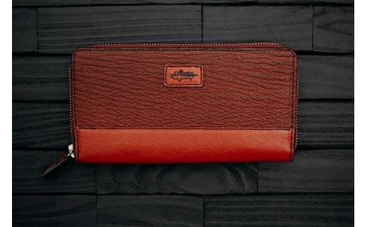 沖縄南城セレクション受賞【cafooca /カフーカ】サメ革使用の長財布(BLACK/RED) I サメ革 長財布 レザー 財布 高級 革小物 ギフト 工芸 沖縄県 南城市