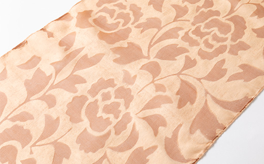 - 草木染めSilkストール 《長瀞びわ染めテラコッタ》《秩父銘仙柄》【1255438】