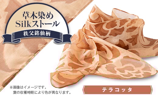 草木染めSilkストール 《長瀞びわ染めテラコッタ》《秩父銘仙柄》【1255438】