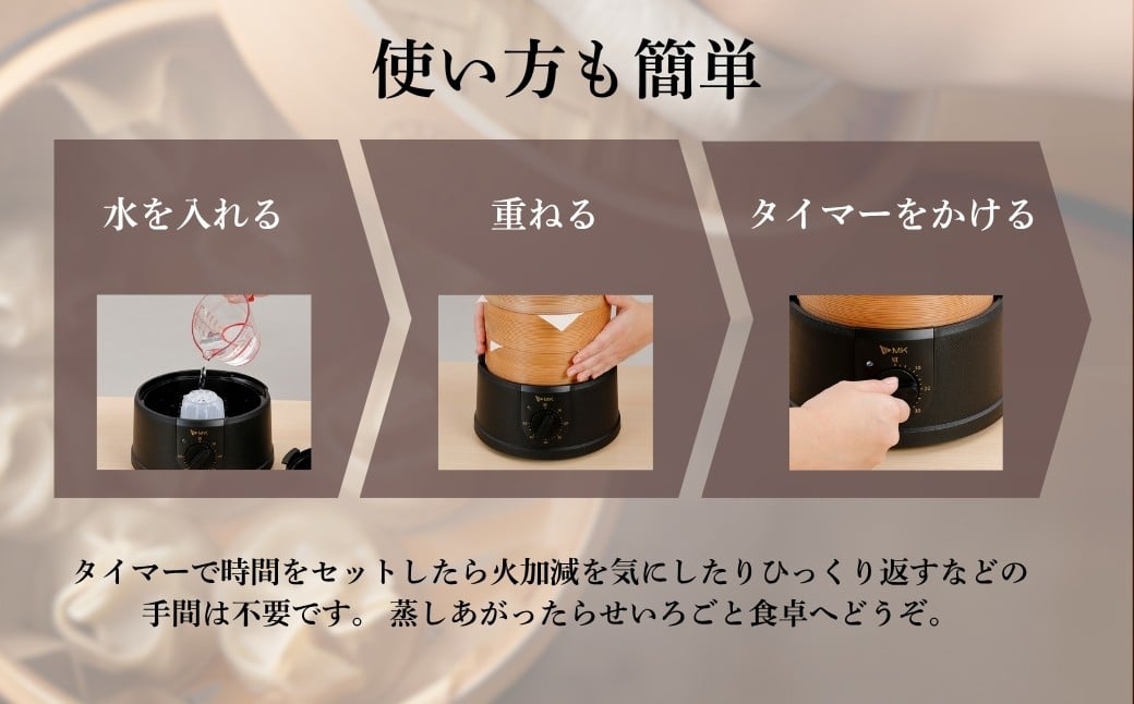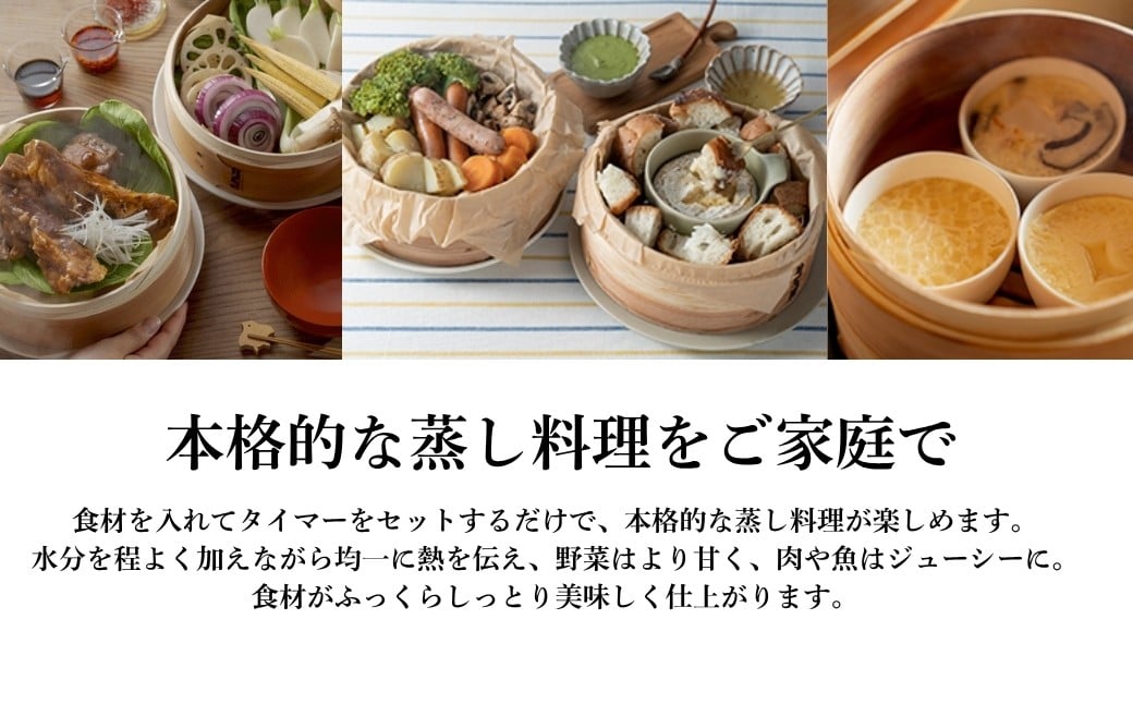 - 電気せいろ「TEGARU SEIRO」18cmタイプ/ブラック/18cmタイプ/ホワイト/21cmタイプ/ブラック|簡単 せいろ 蒸籠 タイマー付き 本格せいろ 蒸し器 調理家電 キッチン家電 蒸し料理 エムケー精工 信州 長野県 千曲市