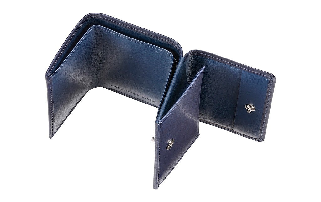 - 豊岡財布 anti-mode style Ai コンパクト ウォレット AW501 勝色 / 財布 三つ折り 藍色 牛革 本藍染 天然染料 ユニセックス メンズ レディース 上品 大人カジュアル コンパクトサイズ アンチモード スタイル 三つ折り財布 ブランド サイフ 木和田正昭商店