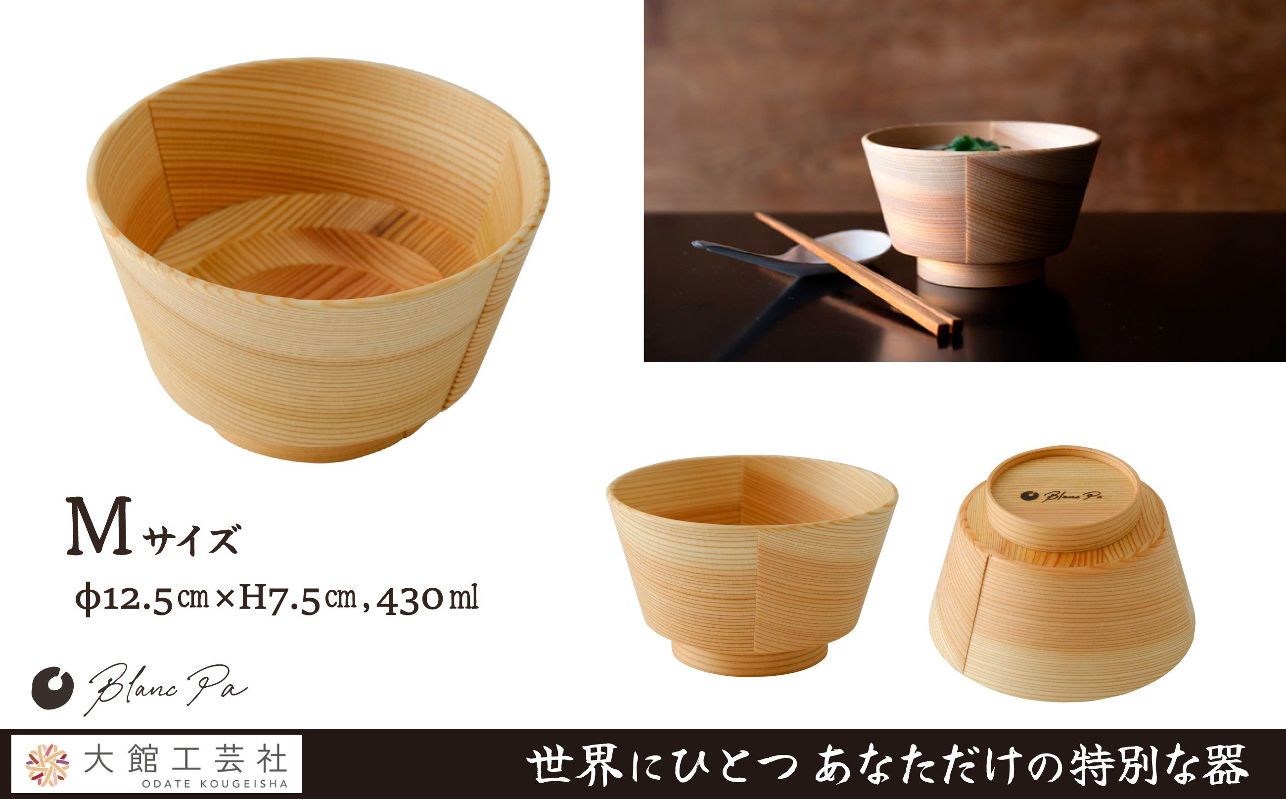 【大館曲げわっぱ】Blanc Pa 「Ply Bowl」M 165P6008 / 曲げわっぱ 伝統 工芸品 日本製 made in Japan 秋田杉 木 軽量 シンプル 職人 贈り物 贈答品 ギフト プレゼント 記念日 誕生日 祝い 東北 秋田 大館 鉢 伝統的工芸品 伝統工芸品 まげわっぱ マゲワッパ どんぶり 丼 おわん ブランパ プライボウル