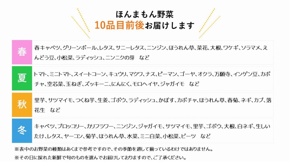 【6ヶ月定期便】化学合成農薬等不使用で栽培!安心安全な「ほんまもん野菜」を10品目前後お届け♪