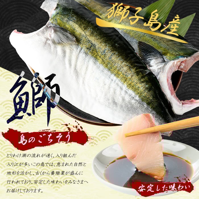 獅子島産 百年漁師の鰤 カマ付きフィーレ2パック (1匹分) 【島のごちそう】 gochi-7039R8