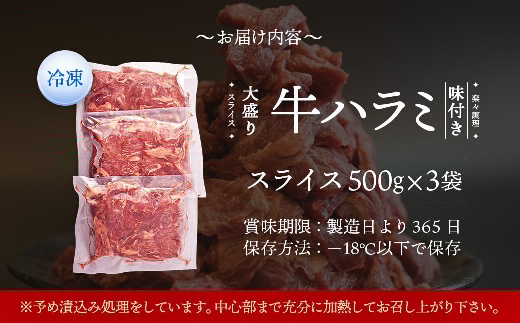 - ハラミ 牛ハラミ スライス 1.5kg 500g×3パック| ハラミ はらみ 牛ハラミ 牛はらみ ぎゅうはらみ 牛肉 お肉 肉 精肉 味付けハラミ 焼き肉 焼肉 バーベキュー BBQ 小分け 冷凍 冷凍便 カメイ株式会社 埼玉県 狭山市