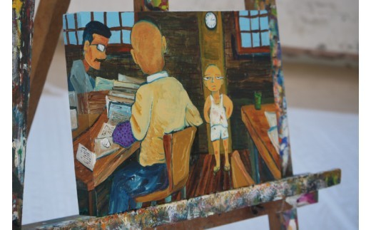 - 気鋭のアーティスト・弓指寛治の作品を特別出品! 弓指寛治「職員室、時計の下(しょくいんしつ、とけいのした)」(2025年制作、油彩画) 1点限り 油絵 絵画 現代アート 水戸市 茨城県(MZ-9)