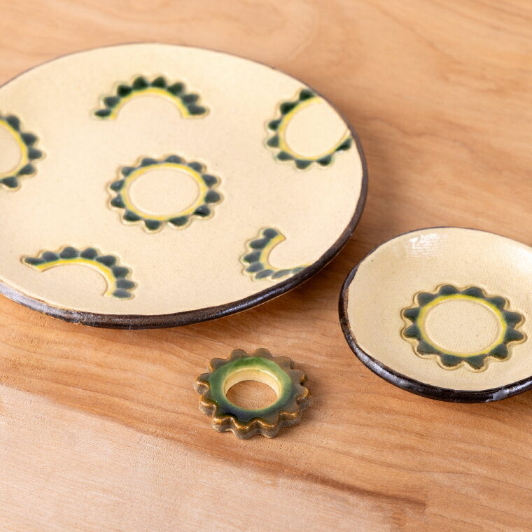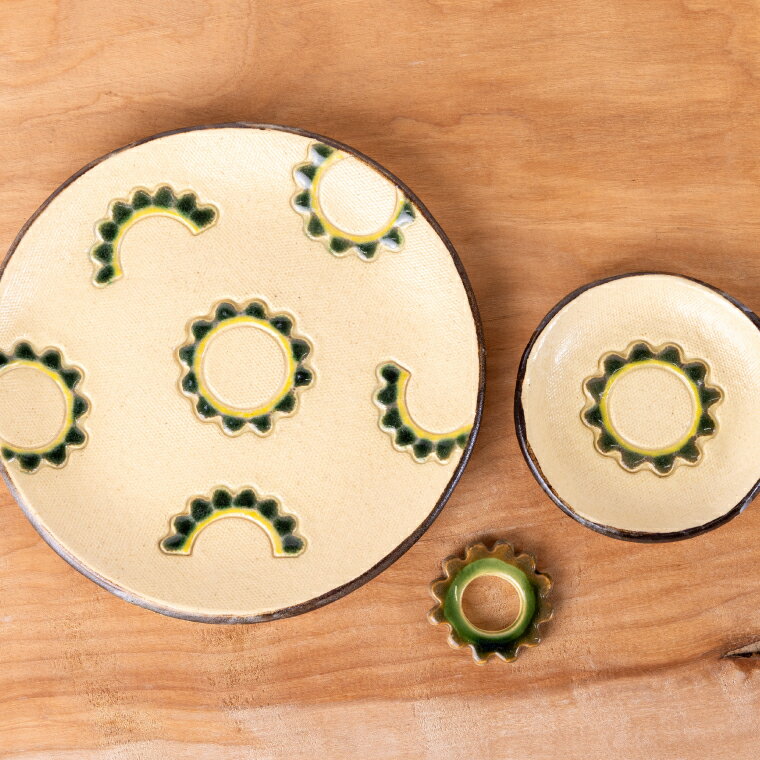 - 【ふるさと納税】ゴーヤーの3点食器セット(丸)|やちむん 皿 豆皿 箸置き ゴーヤー 沖縄県 豊見城市(DD024)