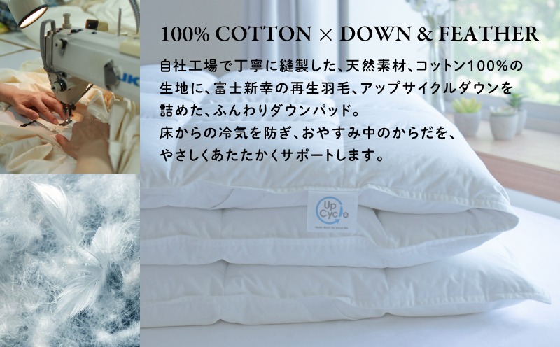 - 【富士新幸謹製】ダブル 羽毛敷きパッド「サステナブルな羽毛」アップサイクル ダウンパッド JC095