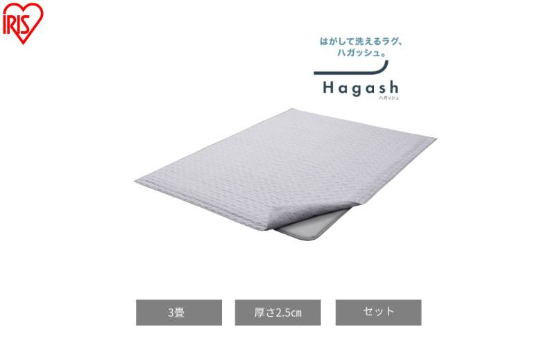 【ふるさと納税】はがして洗える Hagashラグ セット 杢キルト 2.5cm HAGSM25-1824 グレー ラグ 約3畳洗える 洗濯機 おしゃれ 厚手 カーペット 滑り止め ラグマット ズレにくい オールシーズン アイリスオーヤマ ハガッシュ Hagash カバーラグ アンダーラグ セット