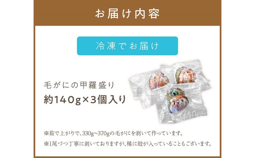 《14営業日以内に発送》船長自慢のオホーツク産毛がにの甲羅盛り 3個入り 冷凍 ( 毛ガニ 毛がに 毛蟹 蟹 かに カニ 甲羅盛り オホーツク海 北海道 北見市 ふるさと納税 グラタン チーズ カニ身 )【114-0073】