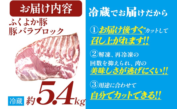 ふくよか豚バラブロック約5.4kg 豚バラブロック 豚バラブロック肉 豚肉 ブタ肉 豚 豚バラ ブロック肉 塊肉 自家製ベーコン チャーシュー しゃぶしゃぶ 角煮 燻製 煮込み料理 ふくよか豚 焼き鳥 サムギョプサル 冷蔵