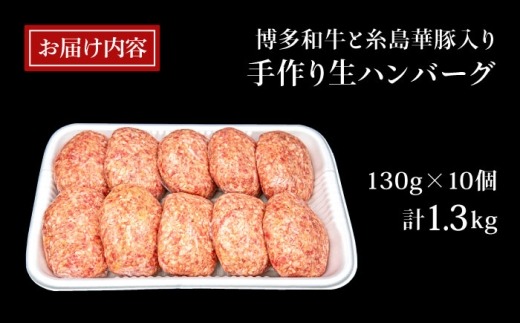【A4ランク博多和牛入り】 特製生ハンバーグ 130g×10個 糸島市 / 糸島ミートデリ工房 牛肉 黒毛和牛 ハンバーグ [ACA253] 博多 和牛 牛肉 豚肉 ハンバーグ 赤身 国産 福岡 冷凍
