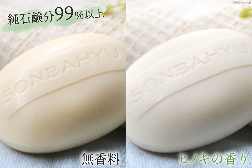 - ソンバーユ 馬油石鹸 無香料 & ヒノキの香り 各1個 セット 計2個 [薬師堂 福岡県 筑紫野市 21760498] 石鹸 化粧石鹸 固形石鹸 馬油 洗顔 洗髪 潤い うるおい 赤ちゃん ベビー