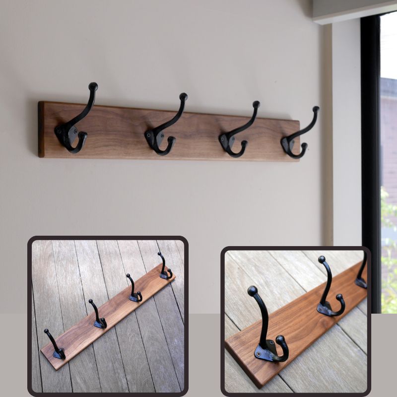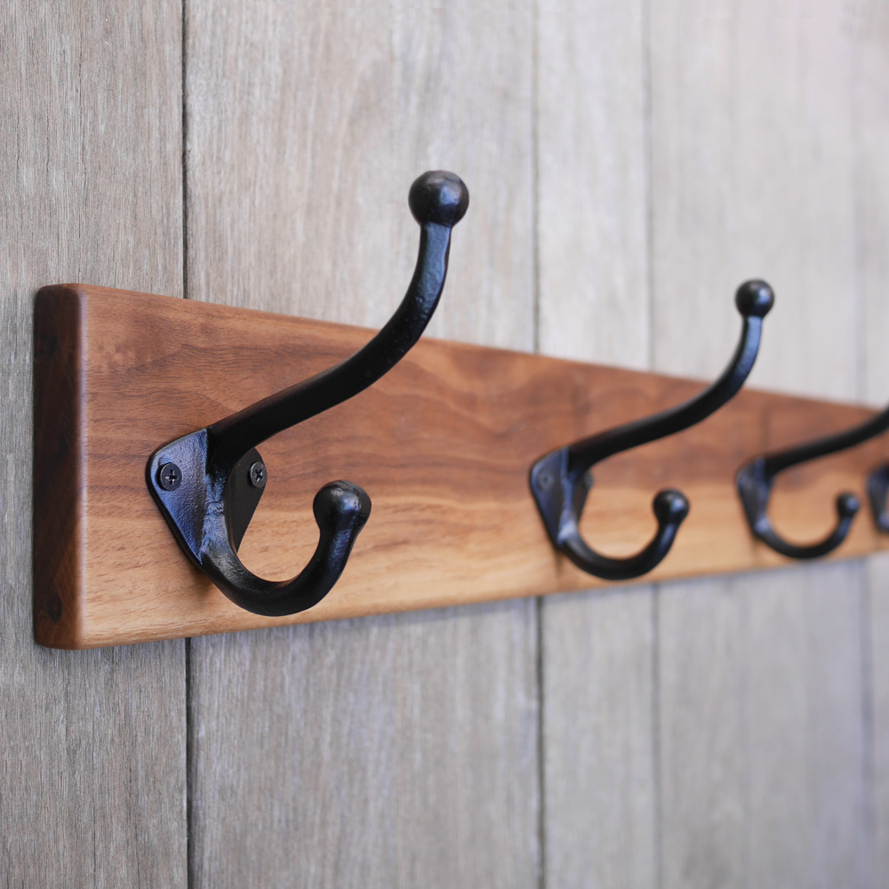 - ハンガー 無垢 ウォルナット材 ウォールコートハンガー 70cm & 4連大きなアイアンダブルフック ウォールフック ウォールハンガー 壁付け 帽子掛け コート掛け コートハンガー 木製 収納 玄関 家具 インテリア おしゃれ 愛知 愛知県 日進市