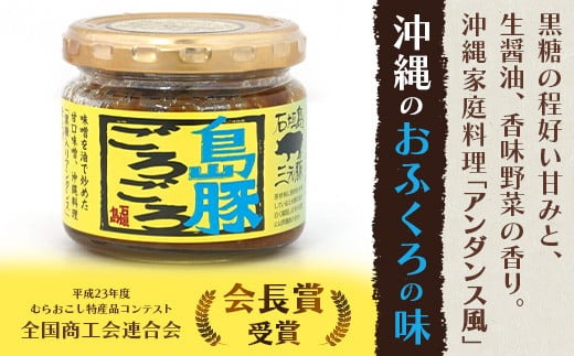 島豚ごろごろ 島唐辛子入り【ピリ辛】×3個・沖縄のおふくろの味×3個 ※人気の2種類セット【沖縄 石垣 みそ ミソ 肉味噌 島唐辛子 調味料】AD-002