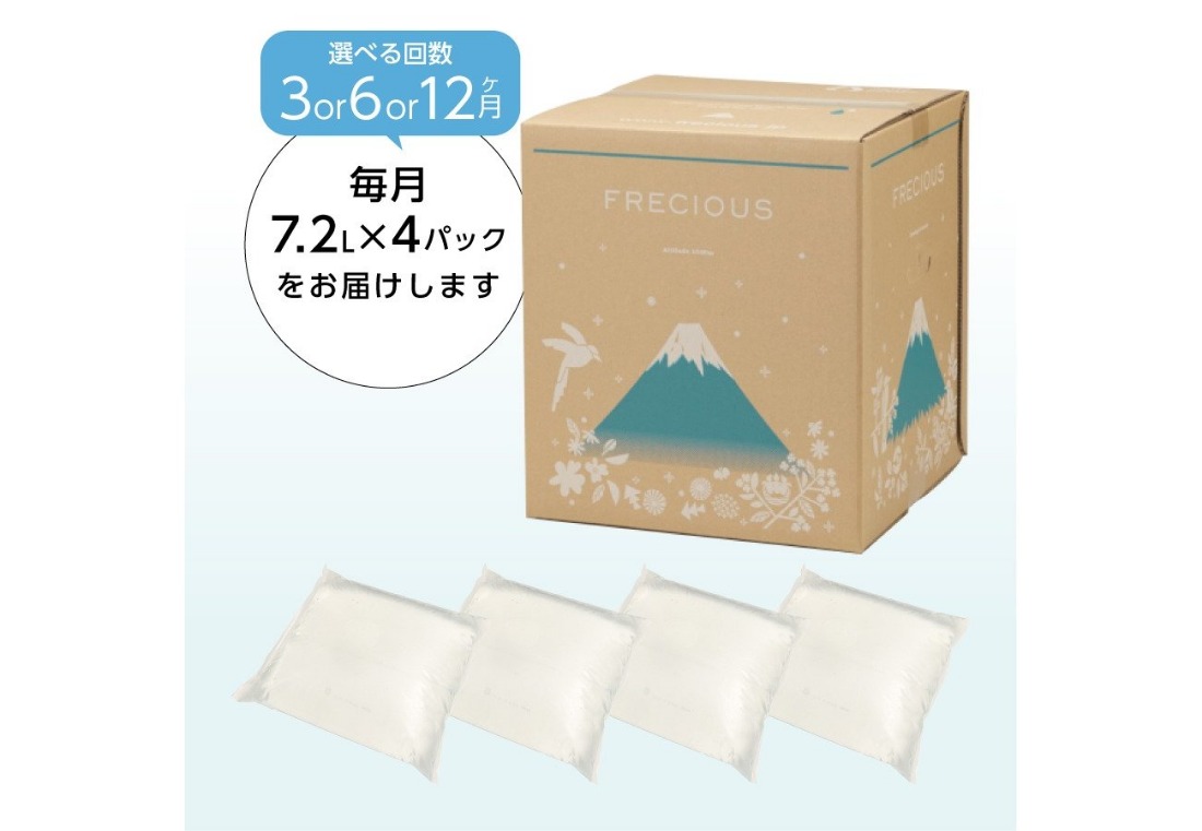 ウォーターサーバー詰め替え用天然水 定期便 FRECIOUS dewo 7.2L×4パック(1箱) 【3ヶ月 / 6ヶ月 / 12ヶ月お届け!】 水 バナジウム 天然水 防災 備蓄 防災グッズ 保存 ストック 山梨 富士吉田