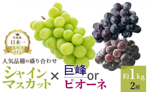 【2026年発送★先行予約】厳選!! 池田青果の【大人気ぶどう2種盛り合わせ】シャインマスカット・巨峰 or ピオーネ(1.0kg) 173-002-26y