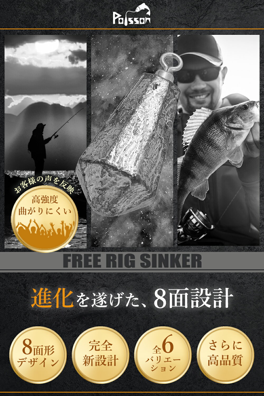 【ふるさと納税】Poisson(ポアソン)鉛 8面型 フリーリグ フリリグシンカー 10g×15個、13.5g×15個、19g×15個、23g×15個、26.7g×15個