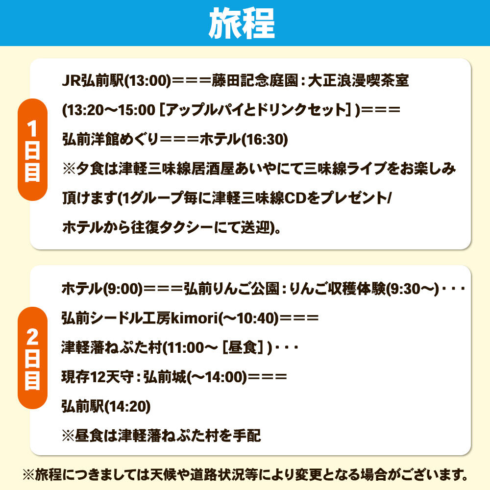 - 【ふるさと納税】【寄附金額見直しました】【タクシーでらくらく移動】着地型弘前りんご満喫ツアー 2名様ご招待