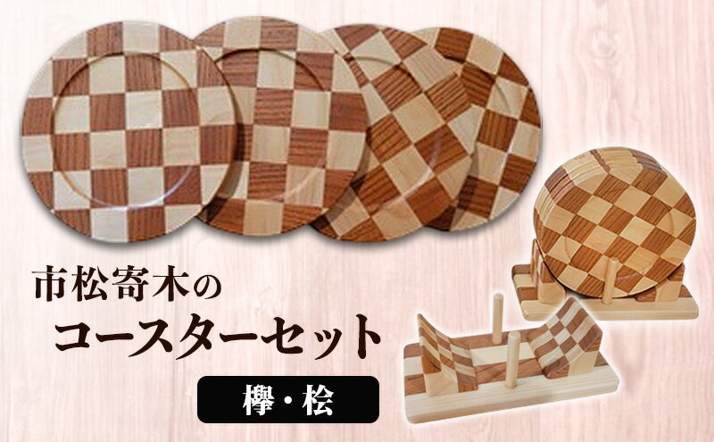 【ふるさと納税】市松寄木のコースターセット(欅・桧) 寄木 寄木細工 木製 コースター セット 広島 安芸高田市