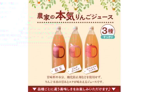 - 青森 りんごジュース 1L×3本 りんご 果汁 100% ストレート すっきり 飲み比べ 詰め合わせ セット