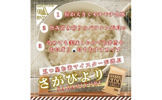 - [令和7年産]【白米】さがびより 3kg [15年連続特A評価! 五つ星お米マイスター厳選! ]