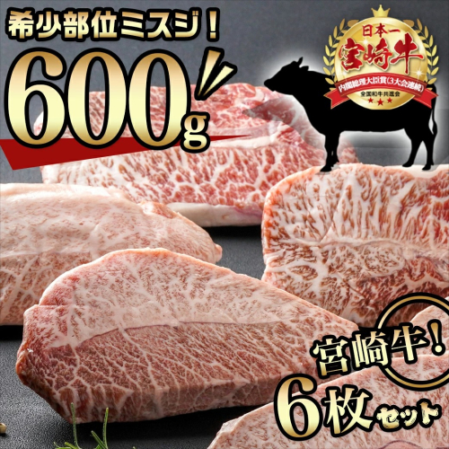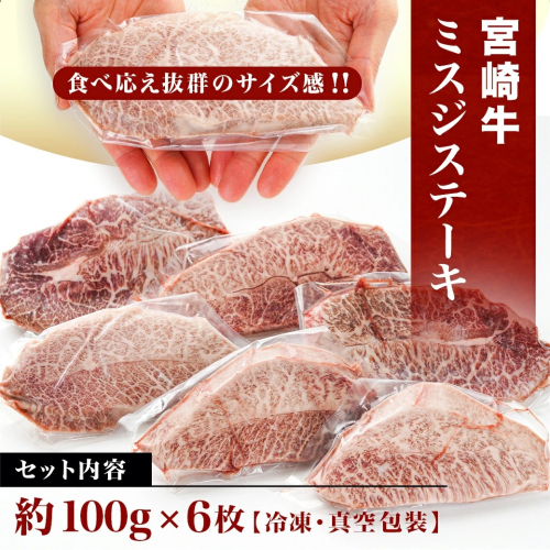 【父の日】宮崎牛ミスジステーキ 約100g×6枚(真空)≪6月18日~21日お届け≫_AC-8918-FG