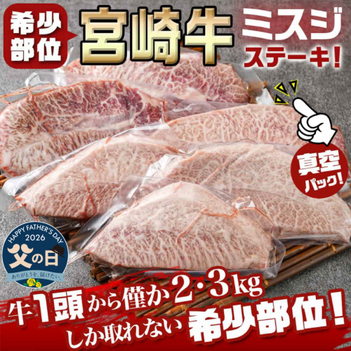 - 【父の日】宮崎牛ミスジステーキ 約100g×6枚(真空)≪6月18日~21日お届け≫_AC-8918-FG