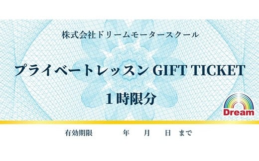 ドリームモータースクール「プライベートレッスン ギフトチケット 1時限分」
