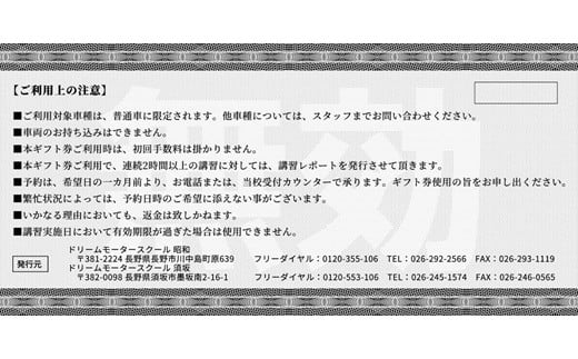 - ドリームモータースクール「プライベートレッスン ギフトチケット 1時限分」