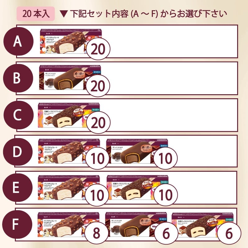 - 【セット内容が選べる】 アイス 定番&期間限定フレーバー ハーゲンダッツ バー セット 20本入 | はーげんだっつ ギフト スイーツ アイス アイスクリーム ice aisu あいす あいすくりーむ 詰め合わせ 洋菓子 プレゼント お中元 お歳暮 お祝い 内祝い 誕生日 冷凍 愛媛県 松前町 送料無料