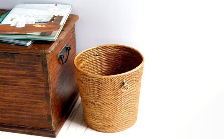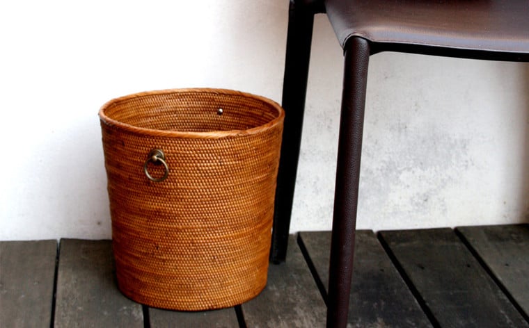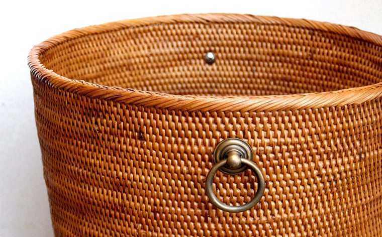 BAI-195SIN アタ 真鍮取っ手ごみ箱(無地・直径25×高さ25cm):シンプル取っ手 真鍮 取っ手 ごみ箱 シンプル おすすめ 雑貨 収納 バスケット かご 箱 リビング 鉢植え プランター カバー インテリア グッズ オリジナル 手作り プレゼント ギフト おしゃれ 洗練 クール 便利 高級感 職人 数量限定 バリ島 アジアン アタブラス ATABRASS SOA