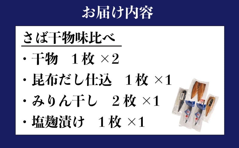 さば 4種味比べ 合計6枚 マルカ印 鯖 さば 干物 昆布だし みりん干し 塩麹漬け 漬け魚 漬け 食べ比べセット さば昆布だし 鯖干物 さばみりん干し さば塩麴漬け さばの味噌汁 冷凍 冷凍干物 詰め合わせギフト 贈答 贈物 酒 のあて 弁当 おかず 惣菜 朝食 夕食 お取り寄せ グルメ 冷凍保存 食品 小分け 個包装 ふるさと納税 ふるさと納税鯖 送料無料 千葉県 銚子市 マルカ加藤水産