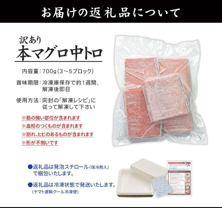 - 選べる単品・定期便 1~12回 選べる配送月 本マグロ訳あり中トロ700g!解凍レシピ付|鮪 本鮪 本まぐろ マグロ トロ とろ 刺し身 さしみ さかな 海鮮 寿司 解凍レシピ付