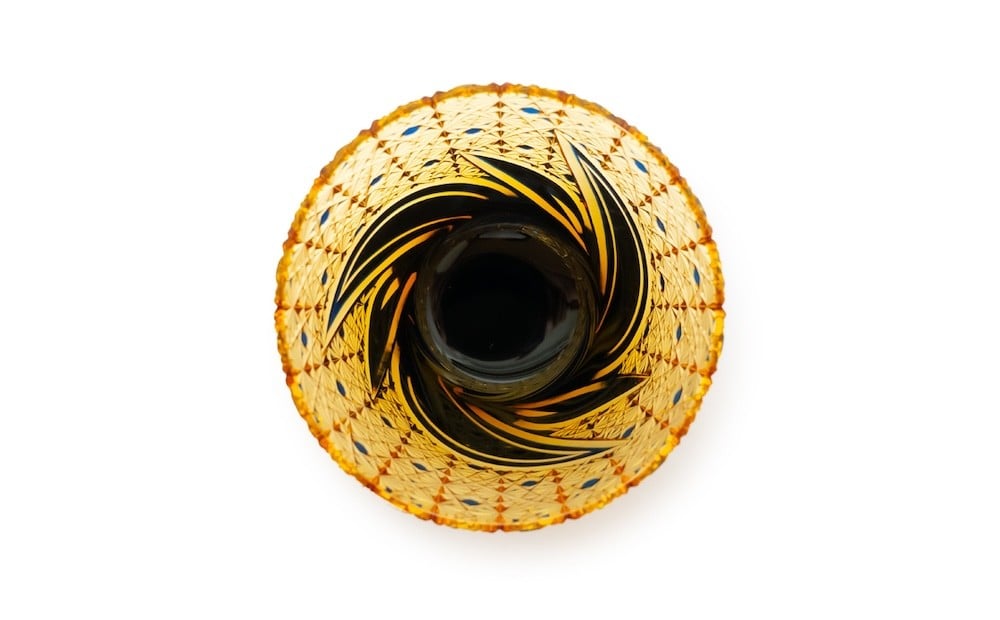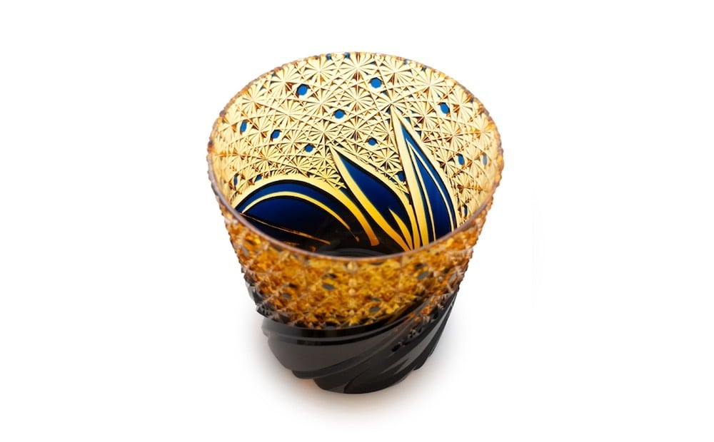 - 浅草切子 KANA KURITA「焔華オールド 瑠璃アンバー」木箱入り| 切子 花切子 切子ガラス ガラス工芸 グラス ガラス コップ 手作り ぐい呑み 家飲み 酒器 ハンドメイド 手作り ギフト 贈答 プレゼント