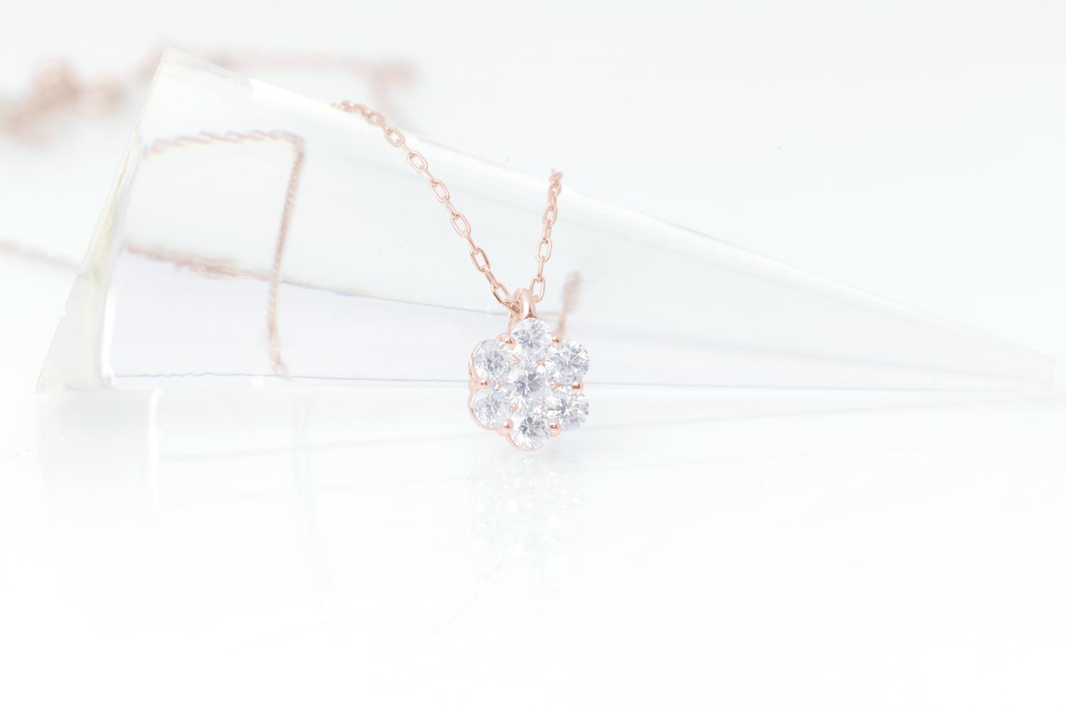 ダイヤモンド ネックレス フラワーL 0.6ct K18 ピンクゴールド ジュエリー ダイヤ 18金 山梨 H-729