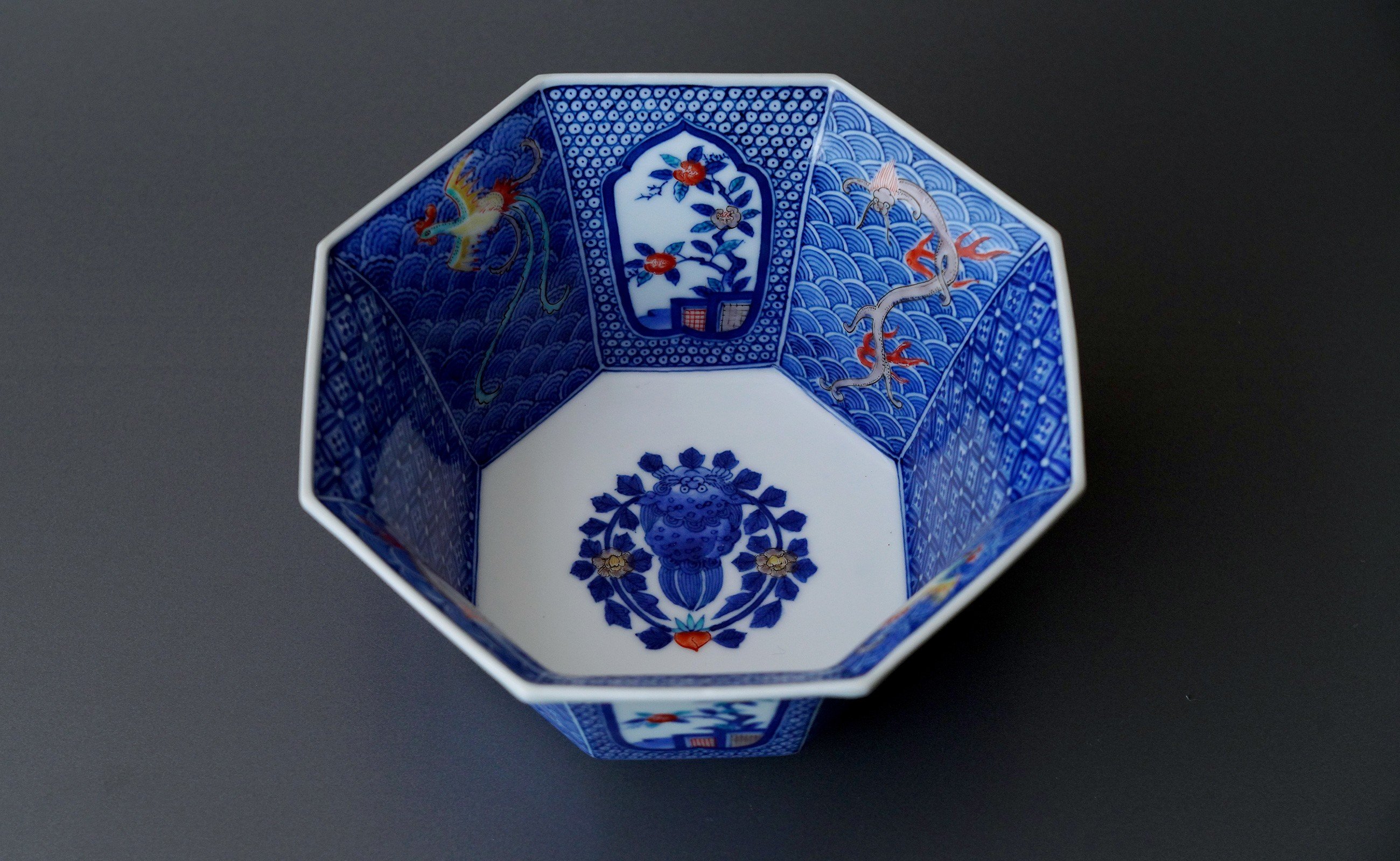 有田焼 十三代柿右衛門窯作 染錦龍鳳凰文 菓子器 共箱付き【鷹巣瑞光堂】赤絵 伝統工芸 陶磁器 柿右衛門 柿右衛門窯 A3000-24