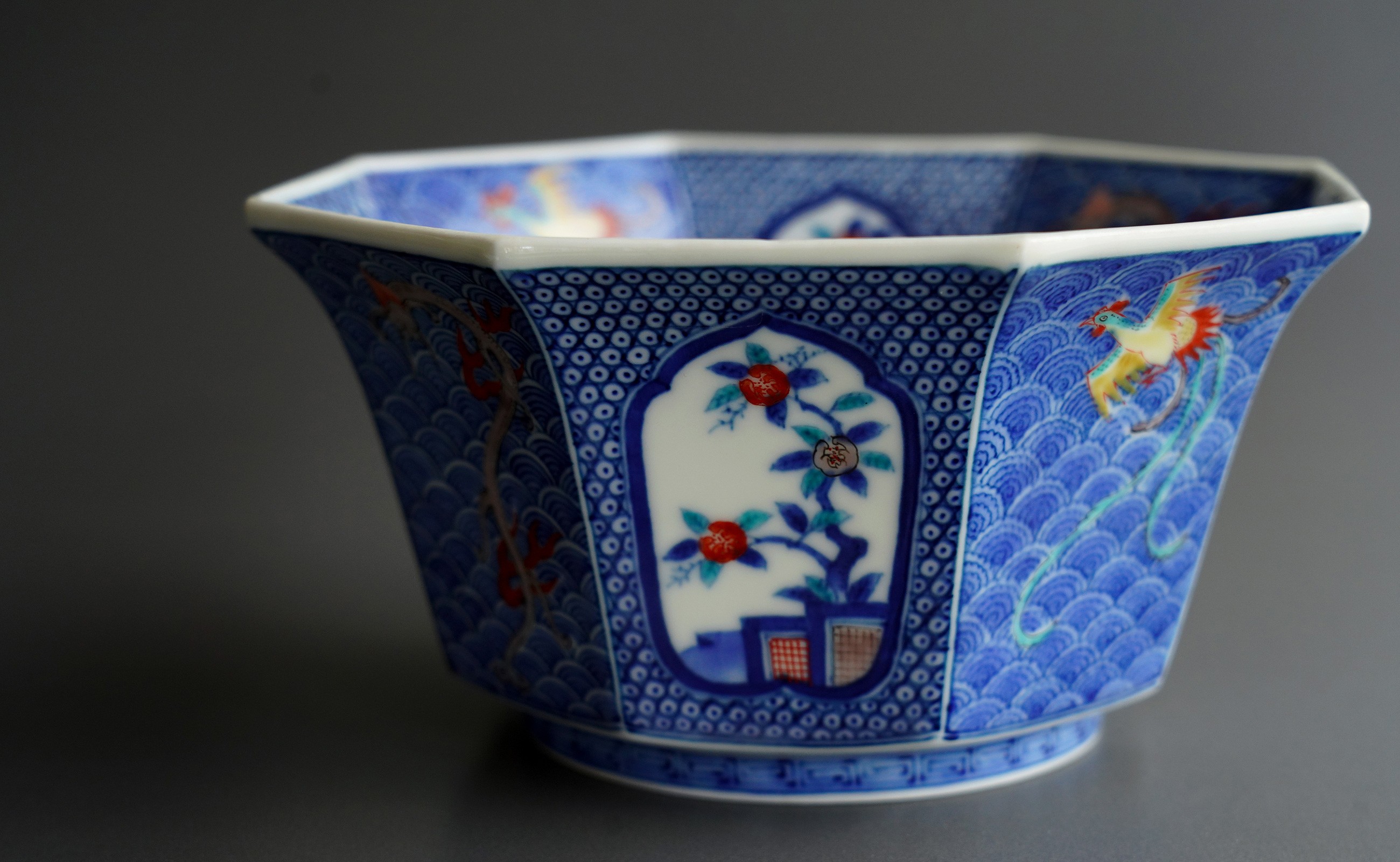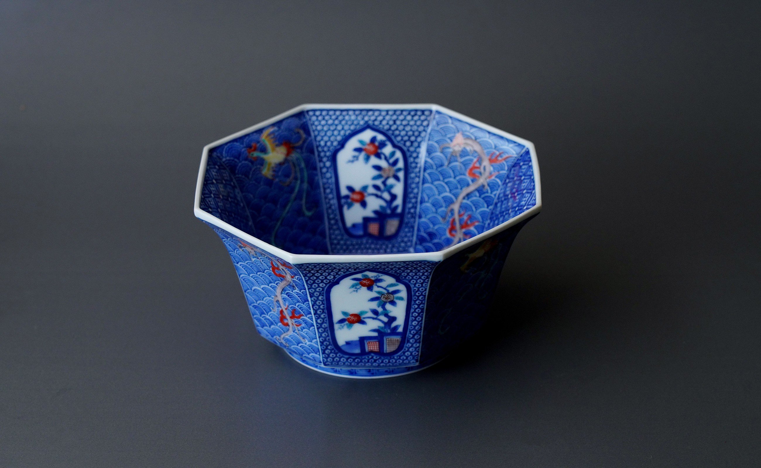 - 有田焼 十三代柿右衛門窯作 染錦龍鳳凰文 菓子器 共箱付き【鷹巣瑞光堂】赤絵 伝統工芸 陶磁器 柿右衛門 柿右衛門窯 A3000-24