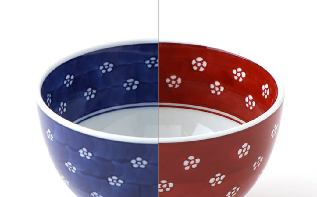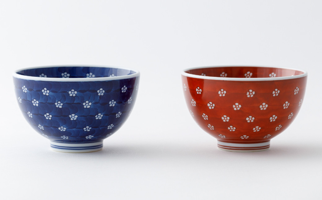 - 【源右衛門窯】有田焼/赤絵・染付梅地紋飯碗2客